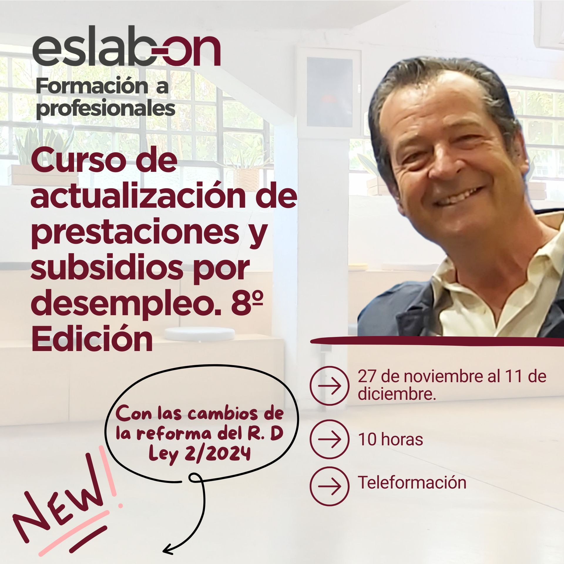 Curso de “Actualización de prestaciones y subsidios por desempleo. Novedades con la reforma del Real Decreto Ley 2/2024. (8ª edición)”