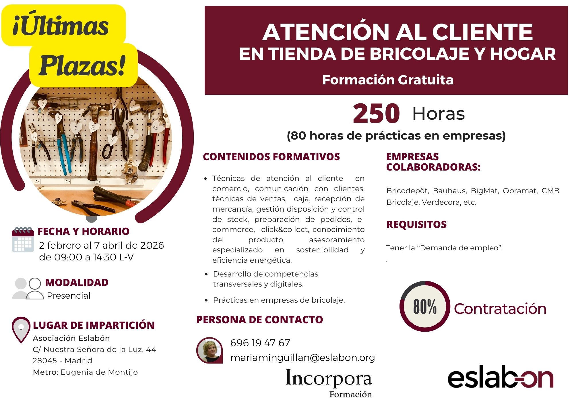 - Atención al cliente en tienda de bricolaje – 250 horas
